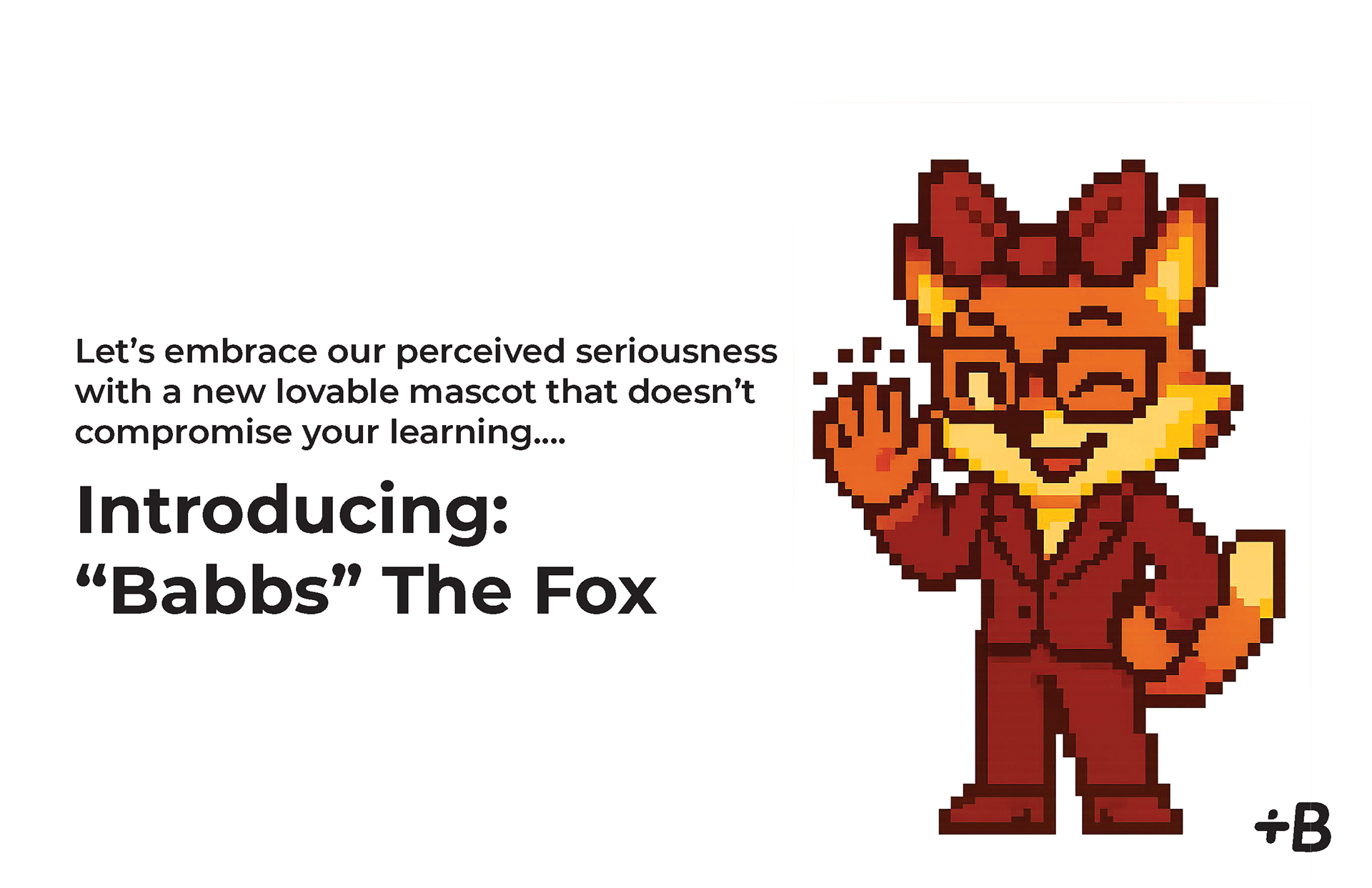 Let’s embrace our perceived seriousness with a new lovable mascot that doesn’t compromise your learning.